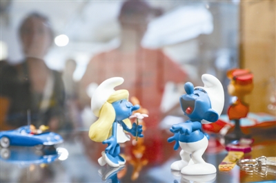 这是8月12日在比利时首都布鲁塞尔比利时漫画博物馆拍摄的蓝精灵玩偶。比利时是丁丁和蓝精灵等著名漫画形象的诞生地。比利时漫画博物馆位于布鲁塞尔市中心,展示着漫画艺术的发展历程、漫画家作品以及各类漫画展览,被称为“漫画爱好者的天堂”。