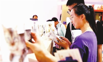 8月15日,读者在上海书展上翻看宠物类书籍。