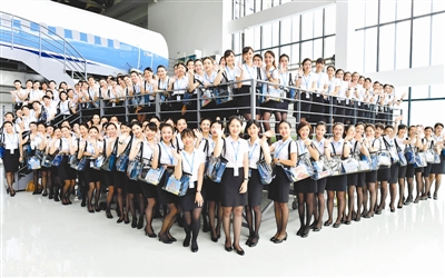8月16日,厦门航空有限公司新入职的百名台湾籍空中乘务员一起合影留念。
