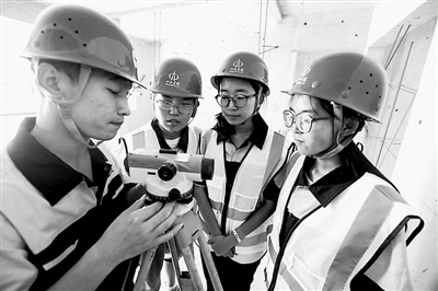 8月15日,10余名金秋助学受助学子走进山西五建集团第五工程公司民政园项目工地,换上工服,戴上安全帽,在项目安全员的带领下,亲身体验了一回工地的日常工作。山西五建集团金秋助学活动持续了13年,累计助85名职工子女完成学业,发放助学金近20万元。程刚 摄