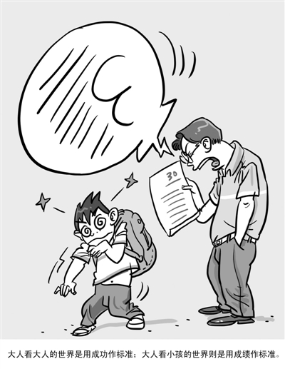 大人看大人的世界是用成功作标准;大人看小孩的世界则是用成绩作标准。赵春青 画