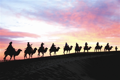 图为游客在甘肃省敦煌市鸣沙山月牙泉景区参观游览(8月19日摄)。