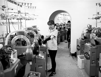 8月22日,工作人员在位于代县聂营镇的达康制袜厂工作。达康制袜厂于今年2月建成投产,吸纳周边3个村的41名贫困户就业。近年来,为解决贫困人口移民搬迁后的就业问题,山西省忻州市代县在移民新区建设扶贫产业园项目,园区规划占地300亩,可吸纳近6000人就业。新华社记者 杨晨光 摄