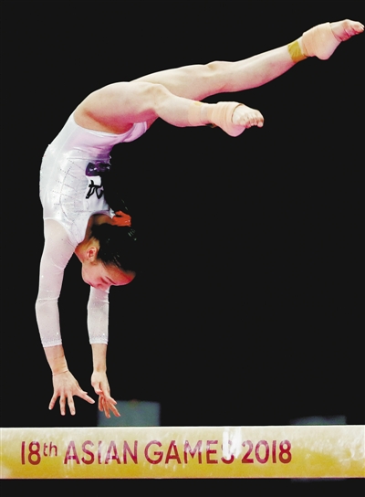 8月22日,体操女队队员章瑾在平衡木比赛中。新华社发