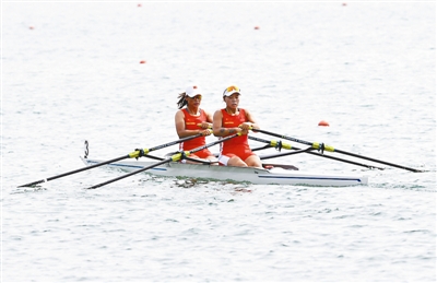 8月23日,在赛艇女子双人双桨决赛中,中国选手江燕、李晶晶获得冠军。 新华社发