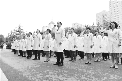 “我决心竭尽全力除人类之病痛,助健康之完美,维护医术的圣洁和荣誉,救死扶伤,不辞艰辛,执着追求,为祖国医药卫生事业的发展和人类身心健康奋斗终生……”