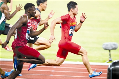 8月26日,在第18届亚运会田径男子100米决赛中,中国选手苏炳添以9秒92的成绩获得冠军。