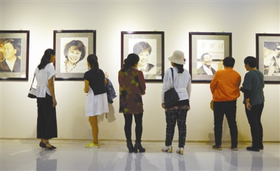 8月23日,广灵、桐庐南北世界非遗剪纸交流展在山西省大同市广灵县举行,剪纸艺术家们的358幅剪纸作品亮相。图为剪纸艺术家创作的时代劳模人物剪纸肖像备受观众青睐。