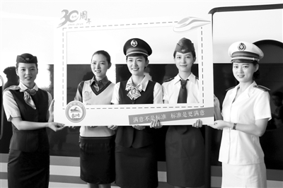 日前,5名乘务员身着不同时代的制服合影。当日,系浙江杭州“西子号”品牌列车30周年“生日”,从1988年的81/82次特快列车到如今的G20次“复兴号”动车组,“西子号”品牌列车不断提速、升级,见证了中国铁路的快速发展。