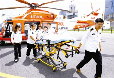 近年来,装备除颤监护仪、呼吸机以及注射泵等适航认证急救设备的医疗救护直升机被越来越多地用于跨地区危重病患的快速转运抢救中,有效提高了医疗救治时效。 新华社记者 方喆 摄
