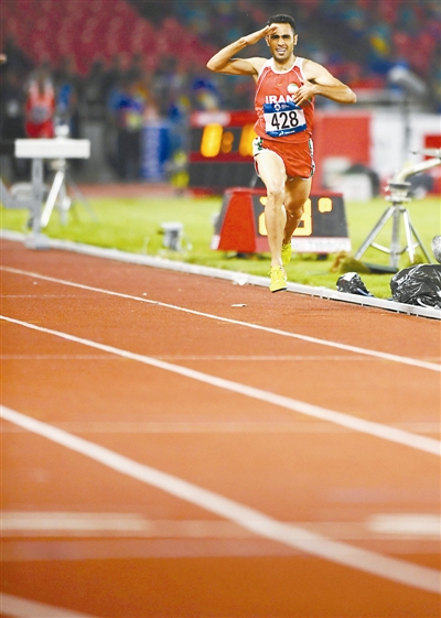 8月27日,在田径男子3000米障碍赛决赛中,伊朗选手凯伊哈尼以8分22秒79的成绩获得冠军。 新华社记者 岳月伟 摄