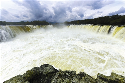 这是8月28日在位于黑龙江省的镜泊湖世界地质公园拍摄的瀑布景观。