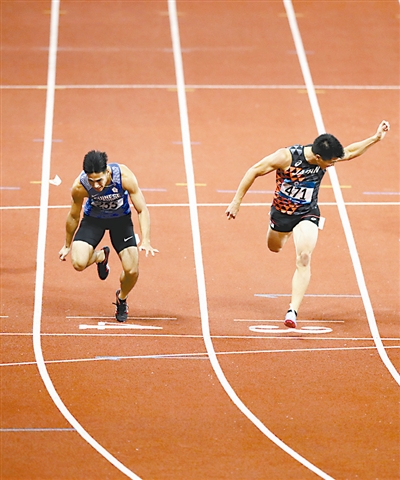 当日,在第18届亚运会男子200米决赛中,日本选手小池佑贵以20秒23的成绩夺冠。 新华社记者 丁汀 摄