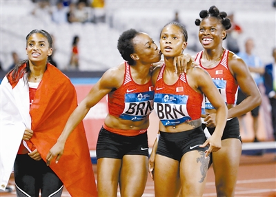8月30日,在田径女子4×100米接力决赛中,巴林队以42秒73的成绩获得冠军。新华社记者 王丽莉 摄