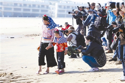 “每天沙滩都停靠了10多辆旅游大巴、几十辆私家车,而渔民则成了‘演员’,成了摄影作品中的主角。”霞浦县摄影协会相关人士说,据统计,从2013年开始,前来霞浦滩涂采风、创作的摄影家和摄影爱好者,年均约30万人次。