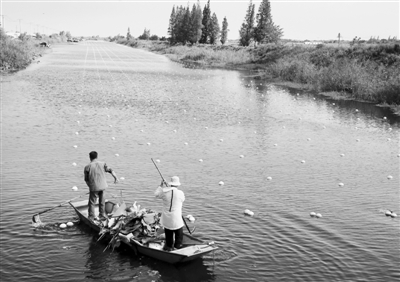 图为江苏宿迁珍珠养殖基地工作人员在水面忙碌。江苏省泗洪县金水集团今年利用养殖园区废弃水道,建立占地面积400余亩的珍珠养殖基地,育有珍珠蚌40万只,生产紫色有核珍珠,此举在增收的同时又能净化水质、改善园区水生环境。
