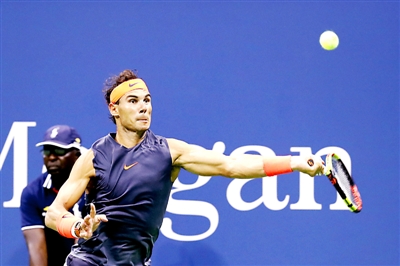 当日,在2018美国网球公开赛男单四分之一决赛中,西班牙选手纳达尔以3比2战胜奥地利选手蒂姆,晋级四强。 新华社记者 李木子 摄