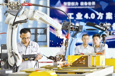 9月5日,河北一科技公司的工人对焊接机器人进行焊接实验。近年来,河北邢台经济开发区加大科技创新力度,引导相关企业发展机器人、智能装备、智能硬件等产业,以机器人和智能装备制造助力当地经济转型升级。 新华社发(陈雷 摄)