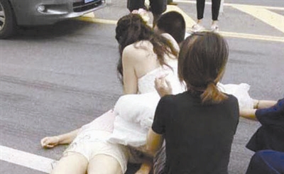 8月19日上午,一张新娘穿着婚纱跪地抢救车祸伤者的图片,在微博和微信朋友圈热传。