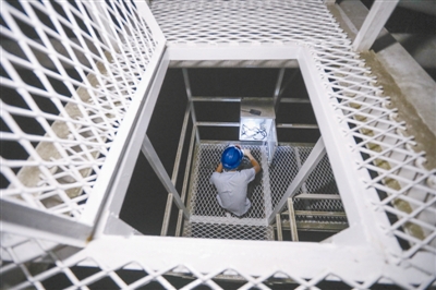 图为工作人员在“中国天眼”圈梁上工作。