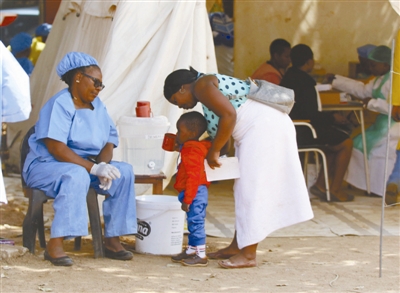 9月12日,在津巴布韦首都哈拉雷的一家医院,霍乱患者接受治疗。
