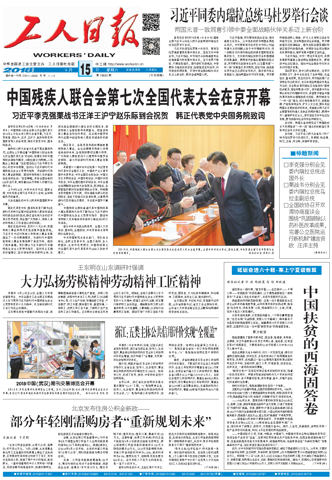 工人日报 2018年09月15日 星期一