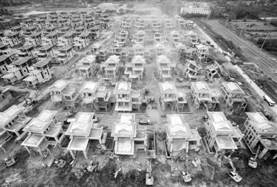 9月13日,西安。59台破拆机连续撞击着违建别墅的主体墙面,一排排别墅的主体结构逐渐被拆除。相关负责人介绍,该别墅项目占地面积461.34亩,将土地的性质从旅游用地变成了住宅用地,属于违建项目。
