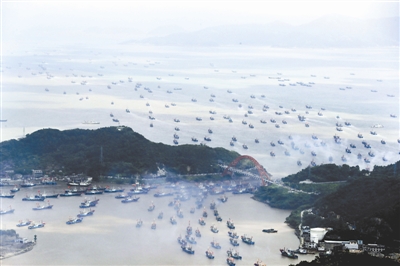 9月16日,在浙江宁波象山县石浦渔港,渔船开向东海。