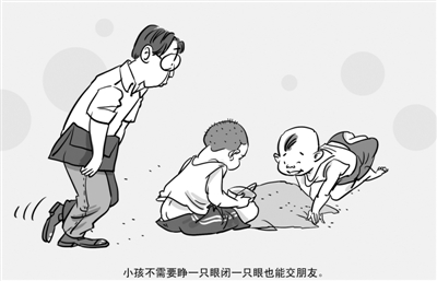 小孩不需要睁一只眼闭一只眼也能交朋友。 赵春青 画