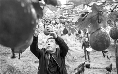 9月16日,陕西省岚皋县蔺河镇新建村贫困户杨修华在瓜蒌园里修剪瓜藤。今年他种植的30亩中药材瓜蒌迎来丰收。岚皋县用多项扶志举措和激励政策,鼓励贫困户脱贫,杨修华是受益者之一。新华社记者 陶明 摄