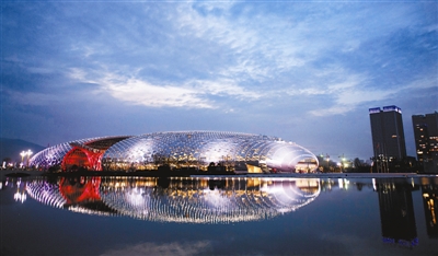 图为联合国世界地理信息大会会址(9月18日无人机拍摄)。