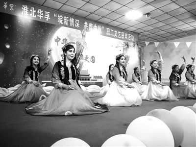 9月18日,安徽淮北市总工会联合有关部门举办“皖新情深、月满中秋”职工文艺联欢活动,与正在淮北华孚纺织公司务工的新疆皮山县少数民族女职工共度中秋。据了解,作为安徽对口援疆项目之一,这批来淮北务工的新疆职工共有200余名。