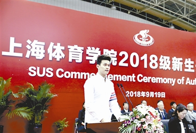 当日,上海体育学院举行2018级新生开学典礼,入读该校运动人体科学专业2018级博士研究生的孙杨参加开学典礼,并作为1600余名新生代表上台发言。