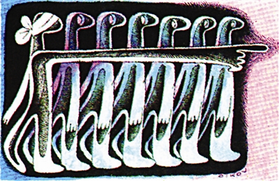 盲从——无知与愚昧的典型表现。看,这幅画中的一群明眼人被失目者驱遣着。我们现实生活中的“瞎指挥”往往不是很“顺畅”吗?