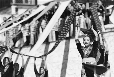 9月19日,演员在“2018扎囊氆氇文化节”开幕式上表演。当日,以“天上氆氇、锦绣扎囊”为主题的“2018扎囊氆氇文化节”在西藏山南市扎囊县桑耶镇开幕。文化节为期4天,期间将举行非物质文化遗产展、民族特色商品展销会等活动。 新华社记者 普布扎西 摄