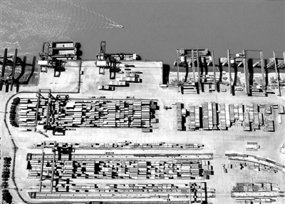 这是西江黄金水道上的贵港罗泊湾集装箱码头(3月9日摄,无人机航拍)。
