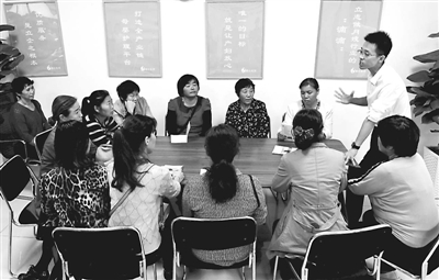 “名字听着怪好听,不就是伺候人的嘛;培训完了发证不、包找工作不……”在河南汤阴县创新大厦二楼的一间办公室里,十几位农村大姐围住一个小伙子(图右)连连发问。小伙子名叫程鹏程,正在创业当“月嫂管家”,围着他的大姐都是来参加免费月嫂培训班的。新华社记者 李安 摄
