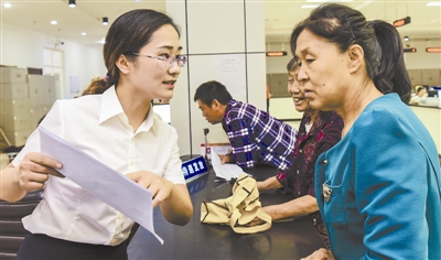 9月25日,在河北省故城县人力资源和社会保障局便民服务窗口,工作人员在为群众办理业务。2017年以来,该县积极推进“最多跑一次”改革,提高为民服务效率。