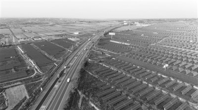 光伏资源作为一种清洁的新能源,既能缓解能源危机,也能改善当今能源格局下的日渐危殆的生态环境。9月23日,陕西渭南,位于蒲城县永丰镇刘家沟的隆基光伏产业项目坐落有序排列,高速公路穿越而过,高空鸟瞰之下格外壮观,一条生态走廊赫然出现。视觉中国 供图