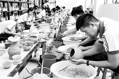 9月25日,在山东省淄博理工学校陶艺分校的拉坯室,学生们正在学习陶瓷拉坯技艺。为传承陶瓷技艺,2017年7月,该校开设了陶瓷专业,弘扬陶瓷文化,培养实用型陶瓷艺术人才,带动当地陶艺创新发展。