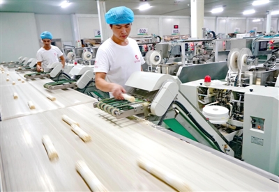 9月27日,工人在河北省南和县河郭乡一家食品加工企业生产车间工作。