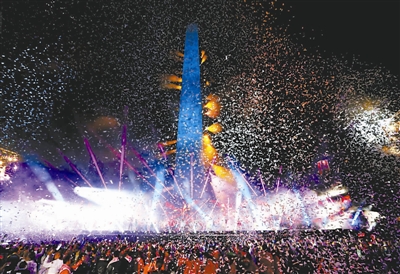 10月6日,第三届夏季青年奥林匹克运动会开幕式在阿根廷首都布宜诺斯艾利斯地标建筑方尖碑前举行。