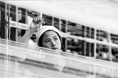 10月6日,江苏省泰州市同欣化纤公司的纺织工人在生产一线作业。国庆期间,许多劳动者仍然坚守在岗位上。汤德宏/东方IC