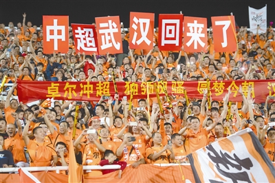10月6日,在2018赛季中国足协甲级联赛第27轮比赛中,武汉卓尔队主场以2比2战平梅县铁汉生态队,凭借积分优势提前三轮冲超成功。新华社记者 熊琦 摄