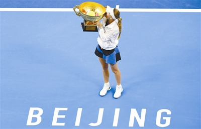 10月7日,在2018年中国网球公开赛女子单打决赛中,丹麦选手沃兹尼亚奇以2比0战胜拉脱维亚选手塞瓦斯托娃,夺得冠军。新华社记者 张晨霖 摄