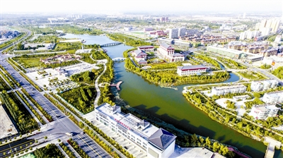 这是在新疆阿克苏地区阿克苏市拍摄的多浪河二期治理工程及其沿岸景观(9月21日无人机拍摄)。