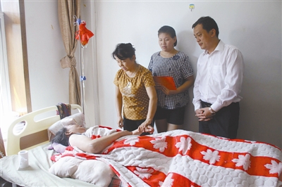 红河州人大常委会副主任、州总工会党组书记、主席普菊红(左一)慰问生病困难职工
