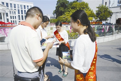 ⑤工作人员发放《条例》宣传册