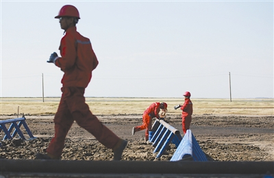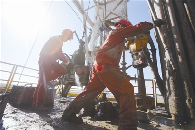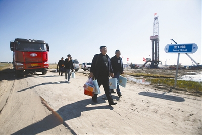 9月20日,1205钻井队的工人们加紧施工,为第四次突破10万米记录进行冲刺。