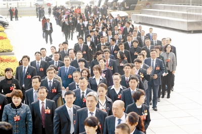 10月22日,中国工会第十七次全国代表大会在北京人民大会堂隆重开幕。图为出席中国工会十七大的代表们依次步入人民大会堂。